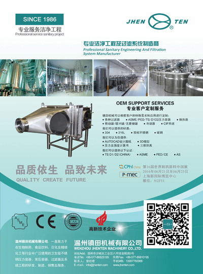 Wenzhou Jhenten Machinery Co., Ltd has been committed to complete production line of sanitary container pressure container and filtration system in bio-pharmaceutics, food and beverage, fine chemical-industry and daily-use chemical industry for years. Not only we sell the products, but also we design and produce customized equipment Upholding the creed that quality is the top, we have been providing the high-quality equipment to various leading customers in the relative fields.